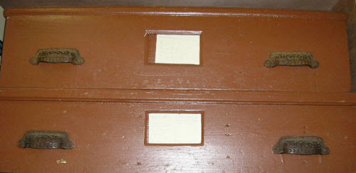Klamer Bos heeft ook nog een paar originele kisten uit de winkel in zijn bezit. Kisten waar de Meyers het zogeheten 'kleinvak' in hadden. Kleinvak? Klein spul als spelden, knopen, garen enzo