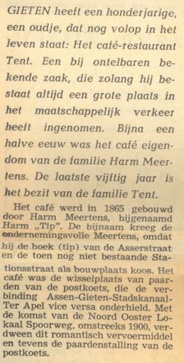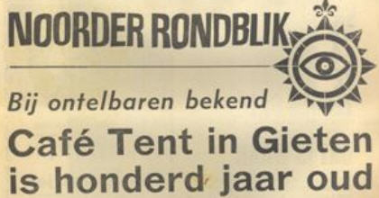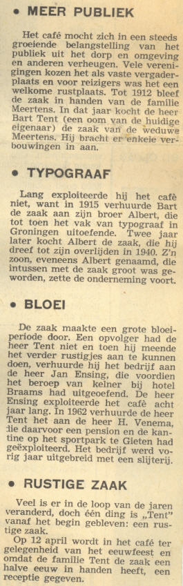 (2007-04) Op 12 april 1965 werd het 100-jarig bestaan van Tent gevierd. In het Nieuwsblad van het Noorden werd er een verhaaltje aan gewijd in de rubriek "Noorder Rondblik".
