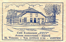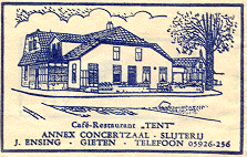Waar momenteel Adolfs zijn blijkbaar vermaarde gehaktballen serveert, daar was vroeger Tent. Zoals uit de suikerzakjes blijkt, niet alleen maar een Cafe Restaurant, maar ook was er een concertzaal en slijterij. Waarom heette het eigenlijk "Tent"? Was hij eigenaar of uitbater, voordat Jan Ensing en Henk Venema daar kwamen? |