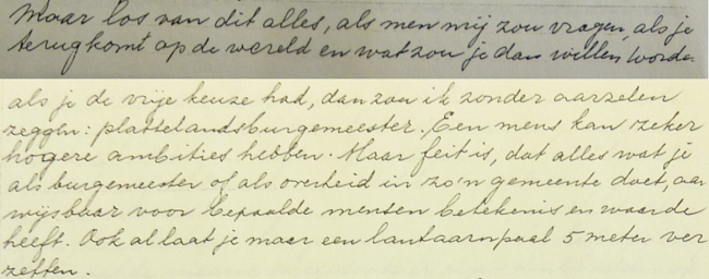 doen, dan zou hij het allerliefst plattelandsburgemeester willen worden, zo