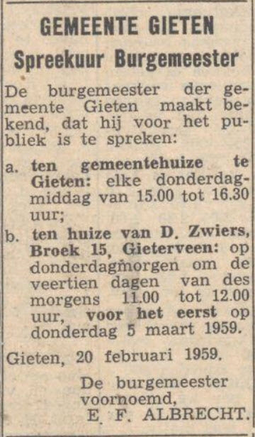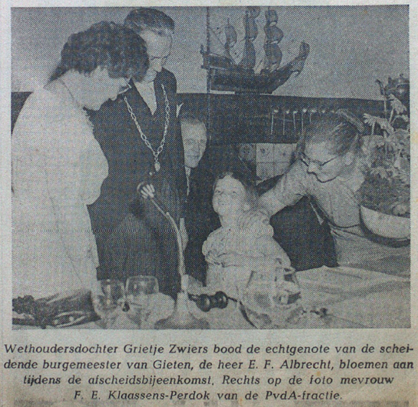 In 1959 stopte Gerhard Nijenhuis als burgemeester van Gieten. Hij was sinds 1930