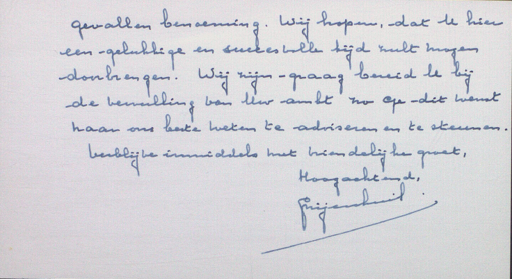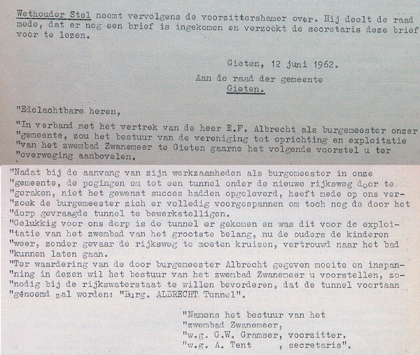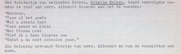 Zoals gezegd was er op 14 juni 1962 het afscheid van de heer Albrecht. Er werd naar aanlediding van een ontvangen brief iets speciaals in stemming gebracht.