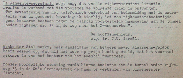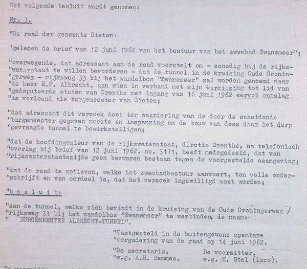 Zonder hoofdelijke stemming werd er unaniem besloten om de tunnel voortaan burgemeester Albrechttunnel te noemen.