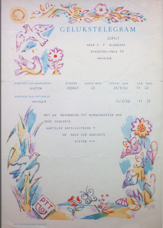 De Gieter gemeenteraad stuurde bij het bekend worden van de benoeming de nieuwe burgemeester een kleurige gelukstelegram.