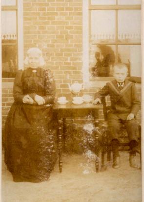 Het leven was er rustig. Op een mooie zomerse dag was er nog alle tijd om met moeder voor het huis gezellig een kopje thee te drinken. Tenminste voor Harm Moek, hij is in dit huis in 1894 geboren. Dus onderstaande foto zal van rond 1900 zijn.