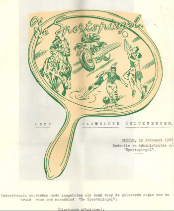(2009-02) Sportend Gieten had in de periode 1956 - 1960 een eigen 'krantje'. Het luisterde naar de prachtige naam "Sportspiegel" Hier een afbeelding van, wat naar ik aanneem, een afbeelding van het voorblad was.