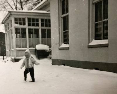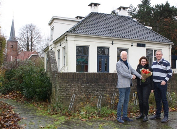 Maar wat komt er dan in? Voor zover ik heb begrepen gaat de familie Langebeeke er wonen. De aanbouw achter het karakteristieke voorhuis zal door de familie Langebeeke worden gebruikt als duurzaamheidscentrum. In dit duurzaamheidscentrum willen de eigenaars informatie geven over duurzaamheidsmaatregelen. Yvonne IJpma heeft met haar ouders nog met twee andere gezinnen in de pastorie gewoond. Ze heeft nog een foto uit 1965 waarop we duidelijk nog de serre zien.