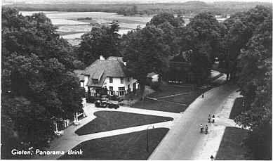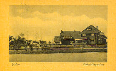 Zoals gezegd werd de nieuwbouw van Gieten hier gesitueerd. Zoals op de foto hiernaast is te zien, werd dat ook wel gewoon 'uitbreidingsplan' genoemd. Deze prent is in 1943 door een Gieterse uit de Asserstraat aan een 'jongeheer' in Amsterdam verstuurd. We zien hier een foto van wat ik nog altijd één van de mooiste ('nieuwe') huizen van Gieten vind. Het huis waar vroeger Duursema in woonde. |