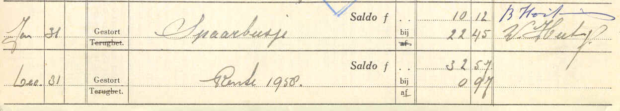 bank om het vergaarde 'rapporten- geld' en 'opa en oma