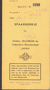 bijdragen' bij te laten schrijven. In de zesde klas gingen we in groepjes op excursie. Daar werd onder leiding van directeur Willem Huting, in het toenmalig bankjargon 'kassier' geheten, een middag bankje gespeeld. Een simulatiespel avant la lettre. Huting gaf ons enveloppen, waarin biljetten van zelfs wel duizend gulden zaten. Nog nooit eerder had ik zoveel geld in handen gehad. We gingen dit geld naar de bank brengen. Klasgenoten zaten aan de andere kant van het loket en moesten dat op juiste wijze administratief verwerken. |