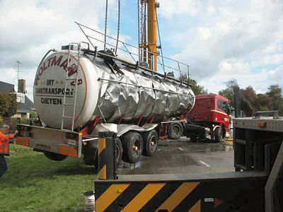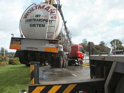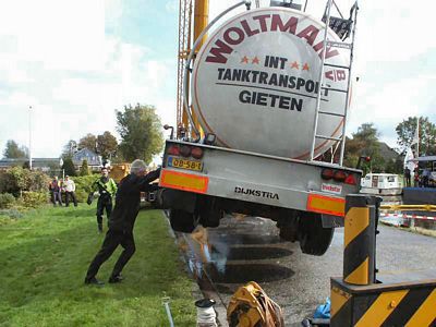 zijn tankwagen had geladen in de fabriek van Gerkesklooster